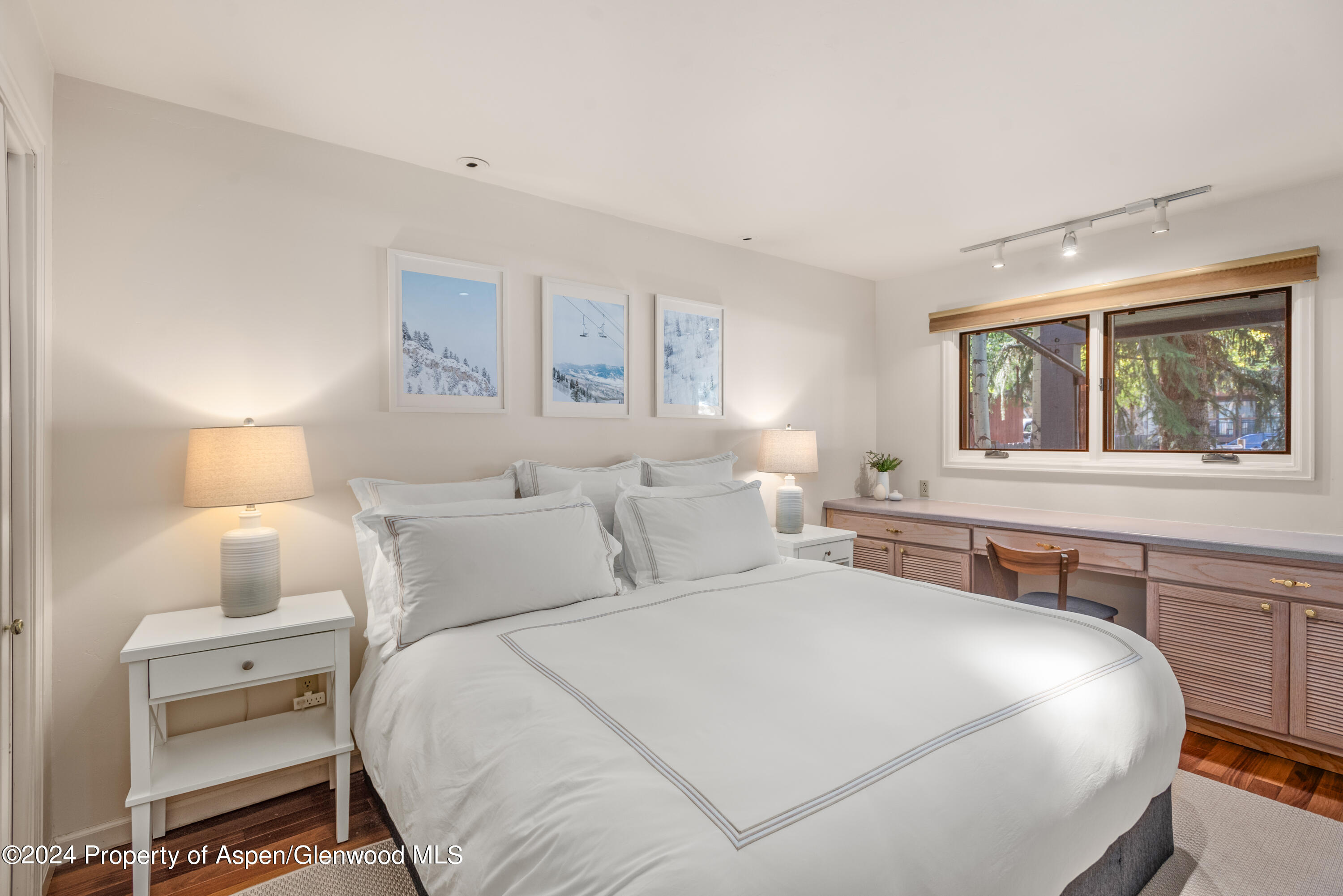 Welcome to this charming 3-bedroom, 2-bath townhome in the heart of downtown Aspen, where mountain adventure meets urban convenience. This light-filled, corner unit boasts views of Aspen Mountain, with a skylight in the dining room and a cozy wood-burning fireplace, perfect for warming up after a day on the slopes or a summer hike. The upper level primary bedroom features a king-sized bed and a private ensuite bathroom. The two guest bedrooms on the main level share a bathroom. With its prime location, you're just a short stroll from Lift 1A and the gondola, ensuring effortless access to world-class skiing and outdoor activities. Additional highlights include a dedicated parking spot for your convenience. The space is deep enough for two cars one behind each other. This delightful townhome blends comfort and accessibility, making it an ideal base for your Aspen adventures. Bedding is King, King, Twin Bunks and Trundle. 3% Service Fee. 21.3% Tax and weekly housekeeping at tenant expense. $45/hr. Short Term Permit #089082
