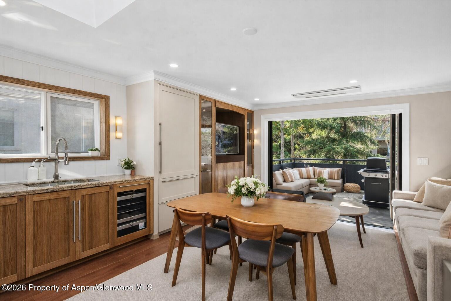 Located in the heart of downtown Aspen, 124 E Durant 1 is a beautifully remodeled, two-level, three-bedroom end-unit townhome offering abundant natural light and coveted views of Aspen Mountain.